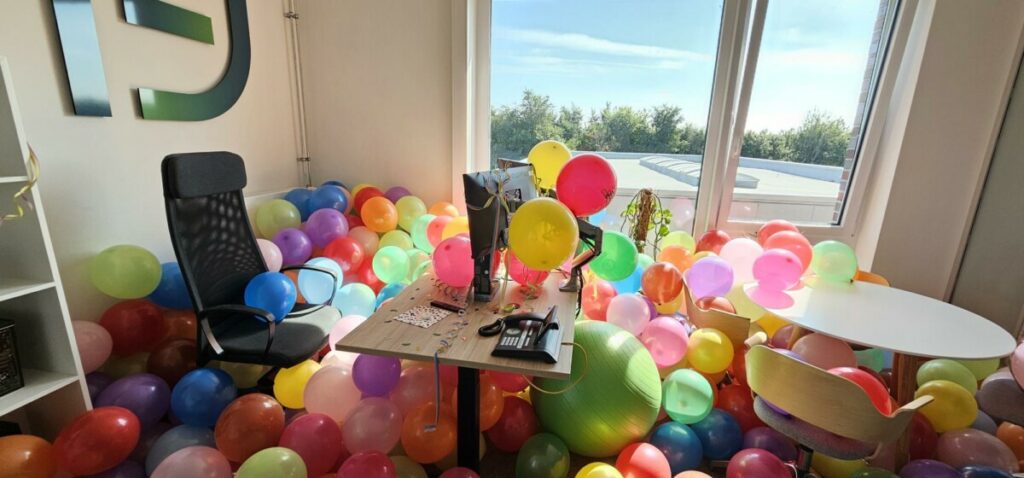 Unser Büro ist hell und freundlich gestaltet. Wir bieten höhenverstellbare Schreibtische und kostenfreie Parkplätze. Jeder Mitarbeiter erhält einen Laptop mit zwei Monitoren sowie Noise-Cancelling-Kopfhörer. Sollte Dir noch etwas fehlen, komm gerne auf uns zu. Zudem kannst du auch in unserem gemütlichen Lounge-Raum arbeiten. Für Deine Pausen steht Dir ein Pausenraum mit einer vollausgestatteten Küche zur Verfügung.
